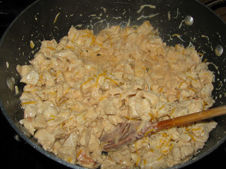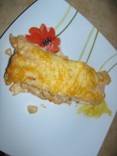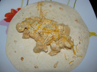 | Spoon chicken mixture onto tortilla and sprinkle with a little more cheese. . |