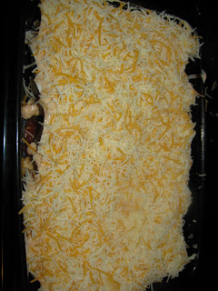 | I sprayed a Pyrex baking dish with non stick spray and added a little salsa on the bottom of the pan, this keeps the tortillas from sticking to the bottom of the baking dish. |