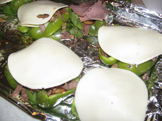 Place a slice of Provolone cheese at the bottom of each pepper.