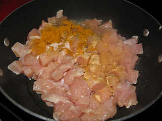 med-high heat. When pan is hot add the chicken and spices. Cook 6-8 minutes or until cooked