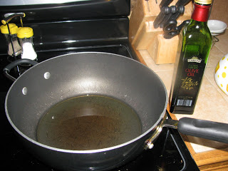 | In a large skillet heat 2 tablespoons of olive oil over med-high heat. |