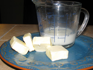 To the potatoes add 4-5 Tablespoons of butter, 1/2 Cup warm