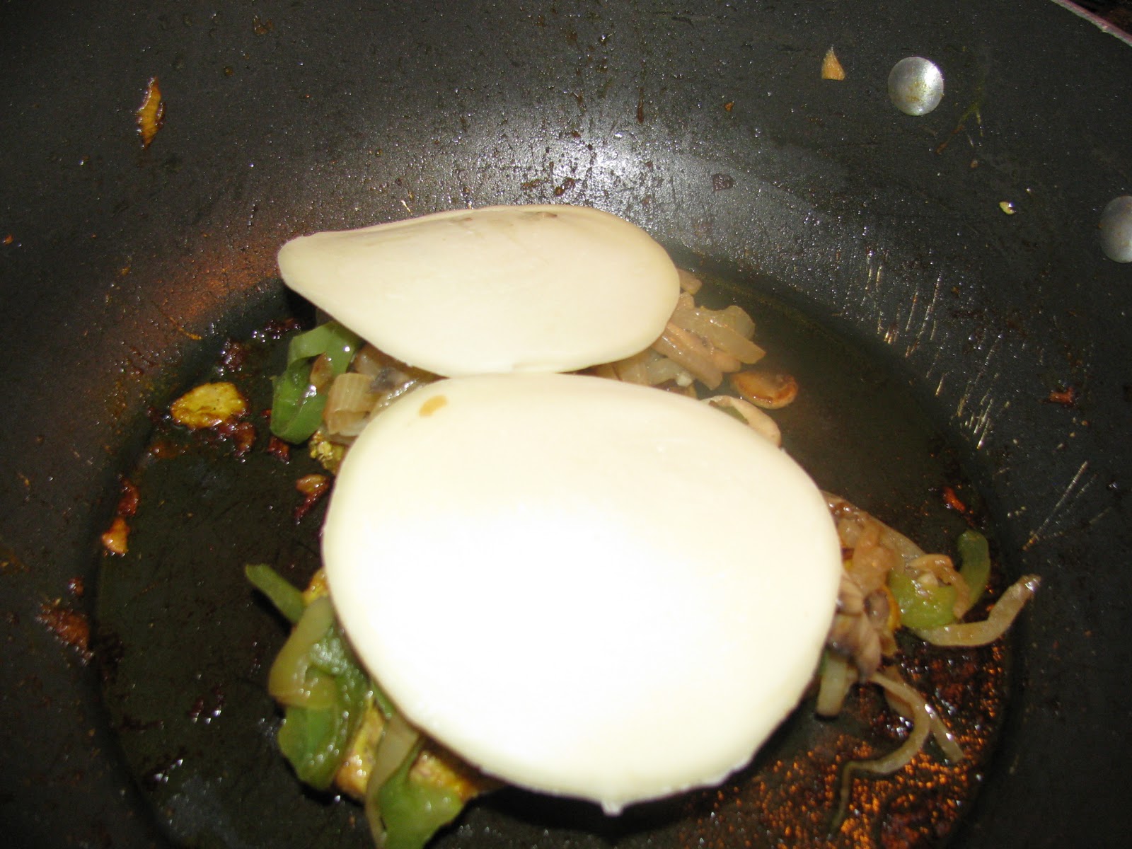 Remove veggies from pan and set aside. Add 2 Tablespoons of olive oil